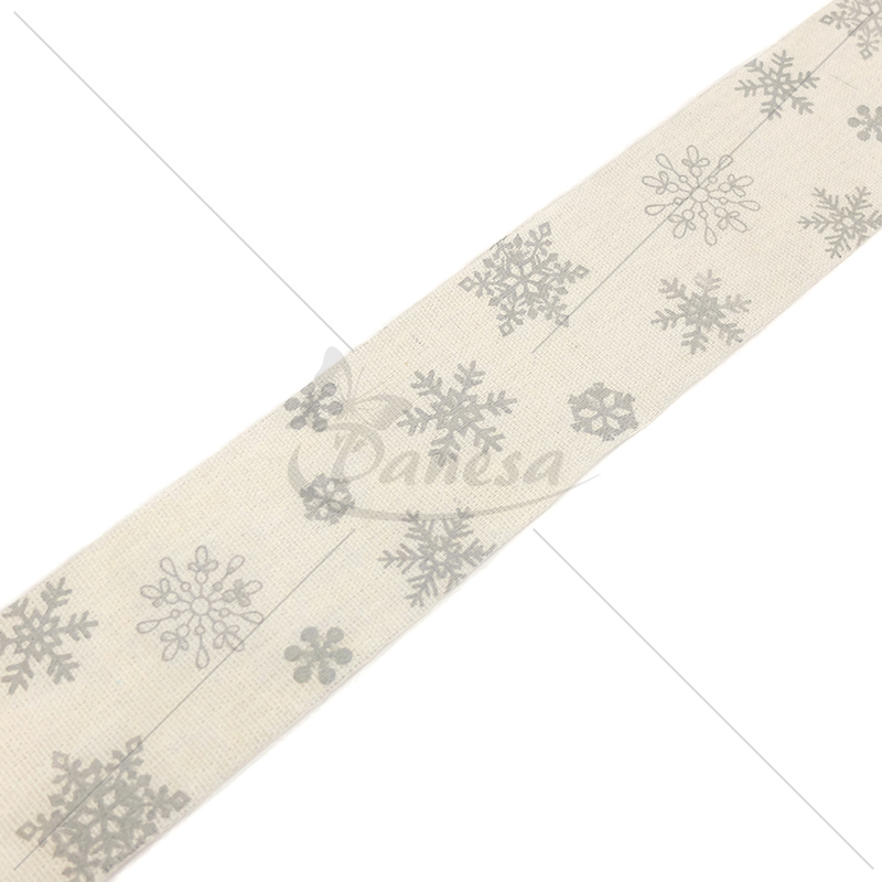 A wide decorative Christmas ribbon.