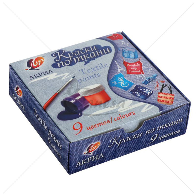 Textile paints are designed for painting on fabrics made of natural and synthetic fibers. The paints dry fast, fixed with an iron. The paints have deep colour and mix well. Waterborne.