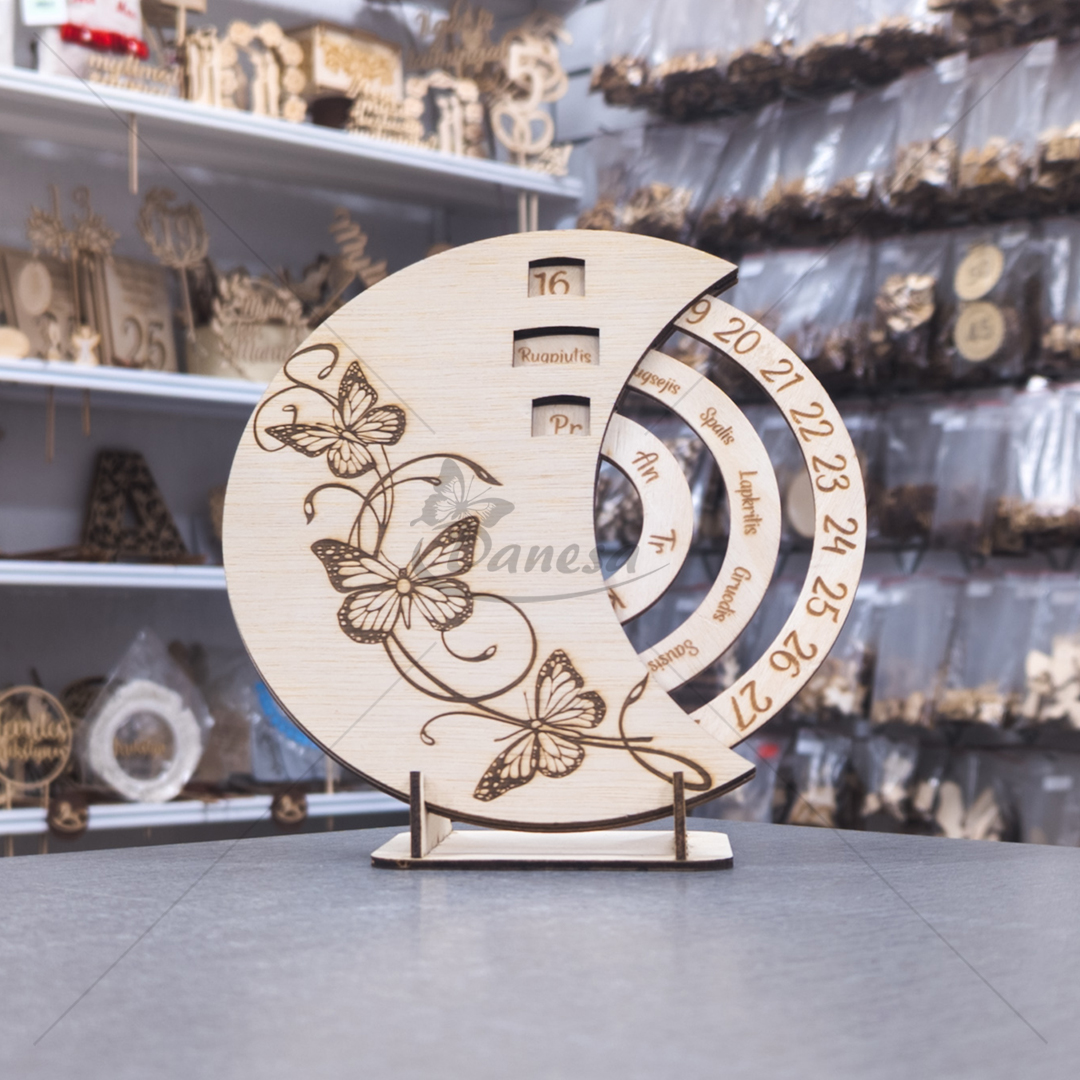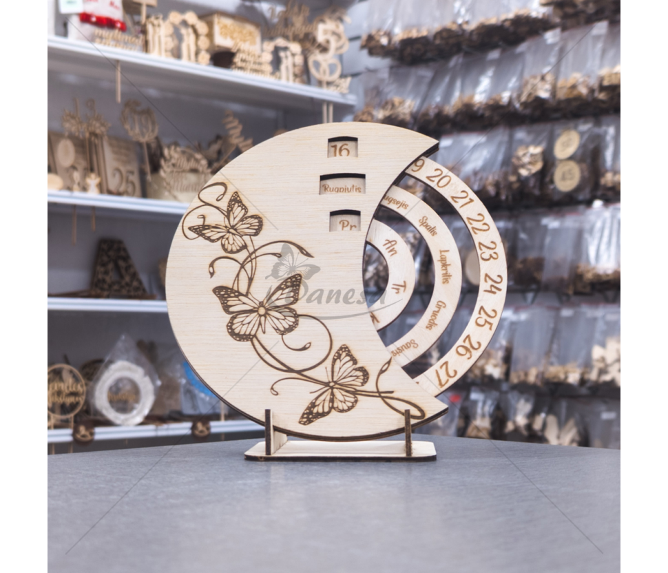 Wooden Calendar Clock "Butterlfy"