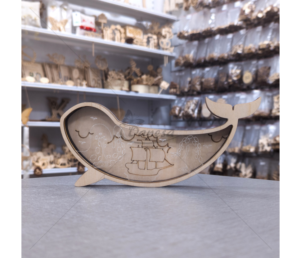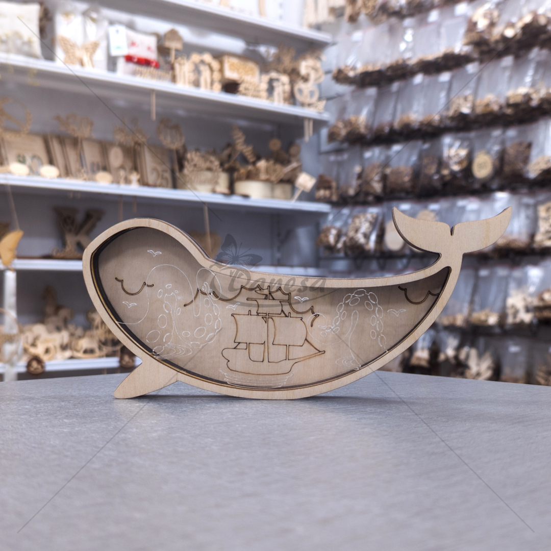 Wooden Whale-Shaped Money Box