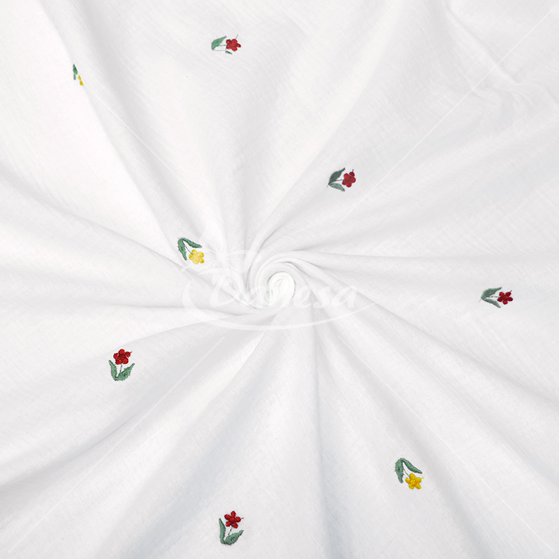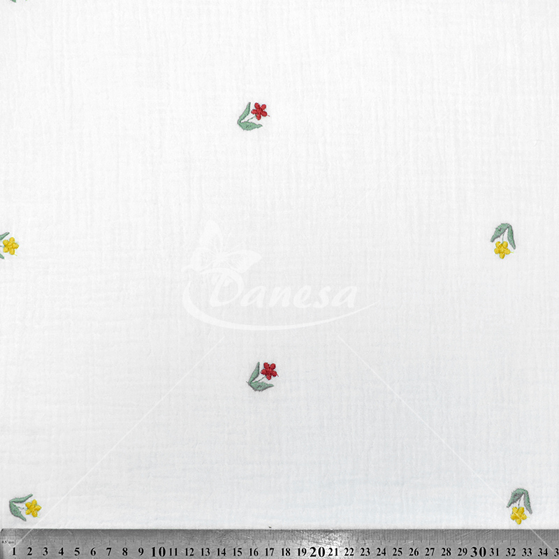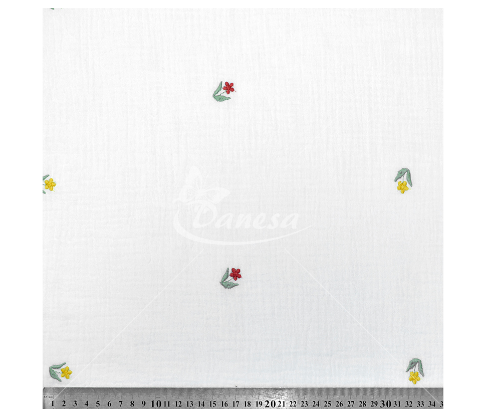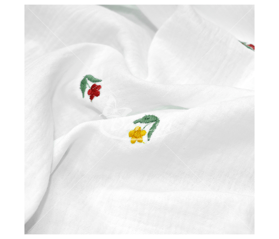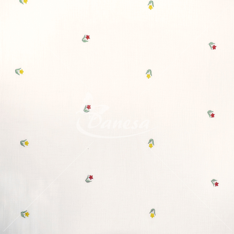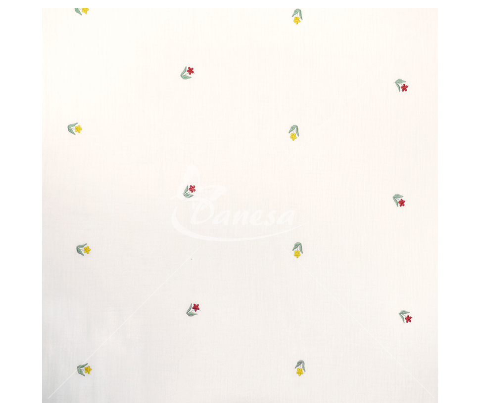 Double gauze muslino audiniai su išsiuvinėtu raštu (organinė medvilnė!). Medvilninis muslinas tai ypač minkštas ir švelnus pasirinkimas, itin aukštos kokybės išdirbimas.
