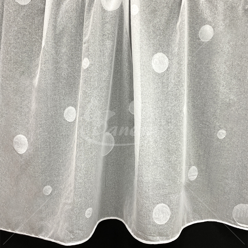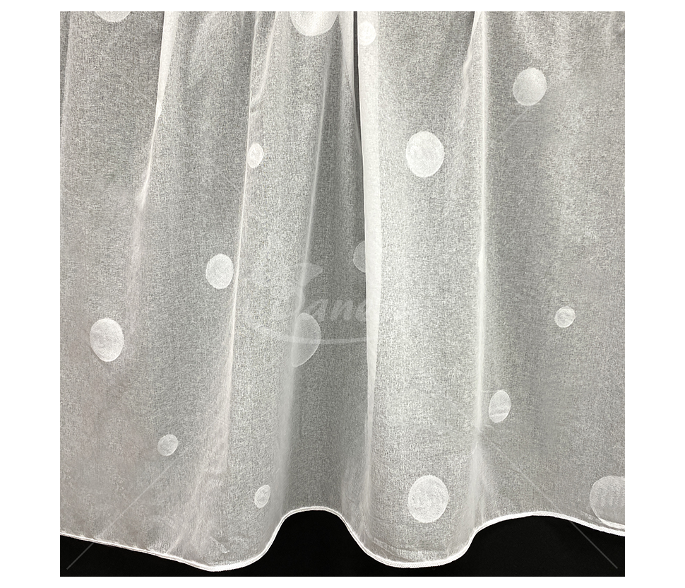 Dieninė užuolaida, tinklinis audimas, su baltais burbulais.