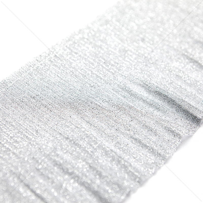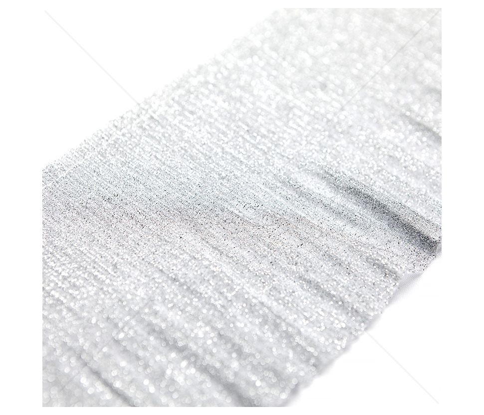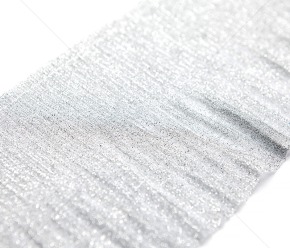 Blizgi dekoratyvinė juostelė, šviesiai sidabrinė spalva.