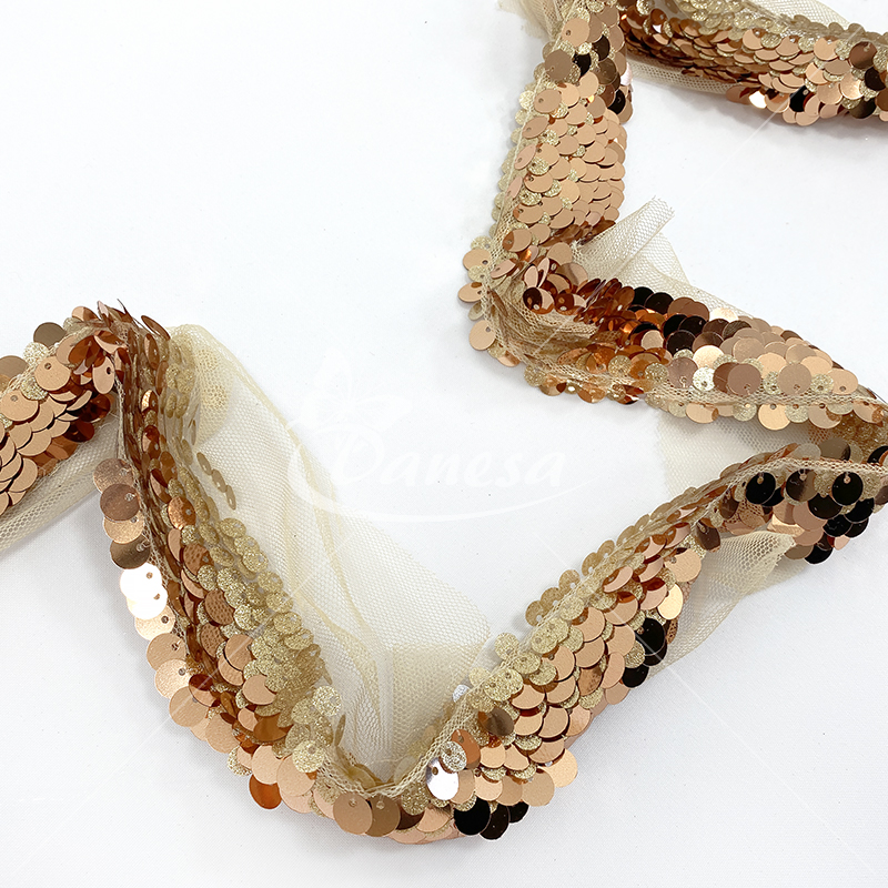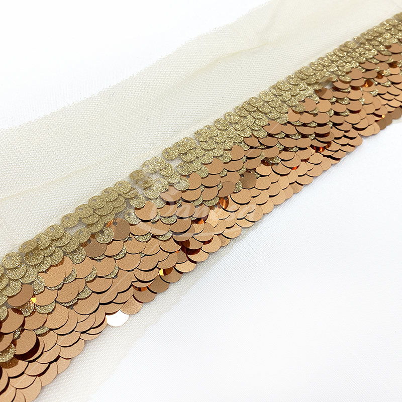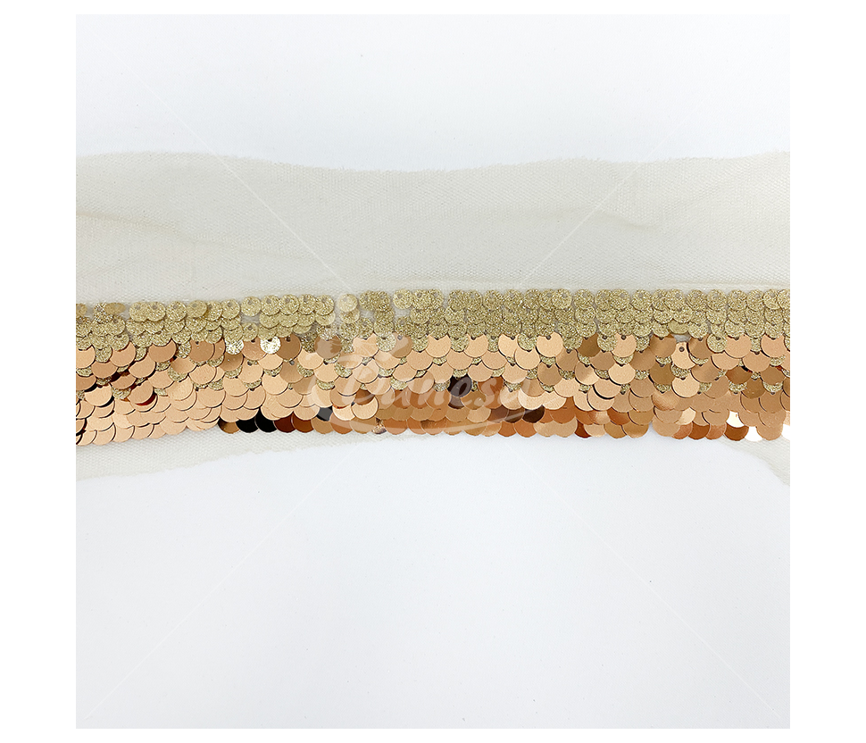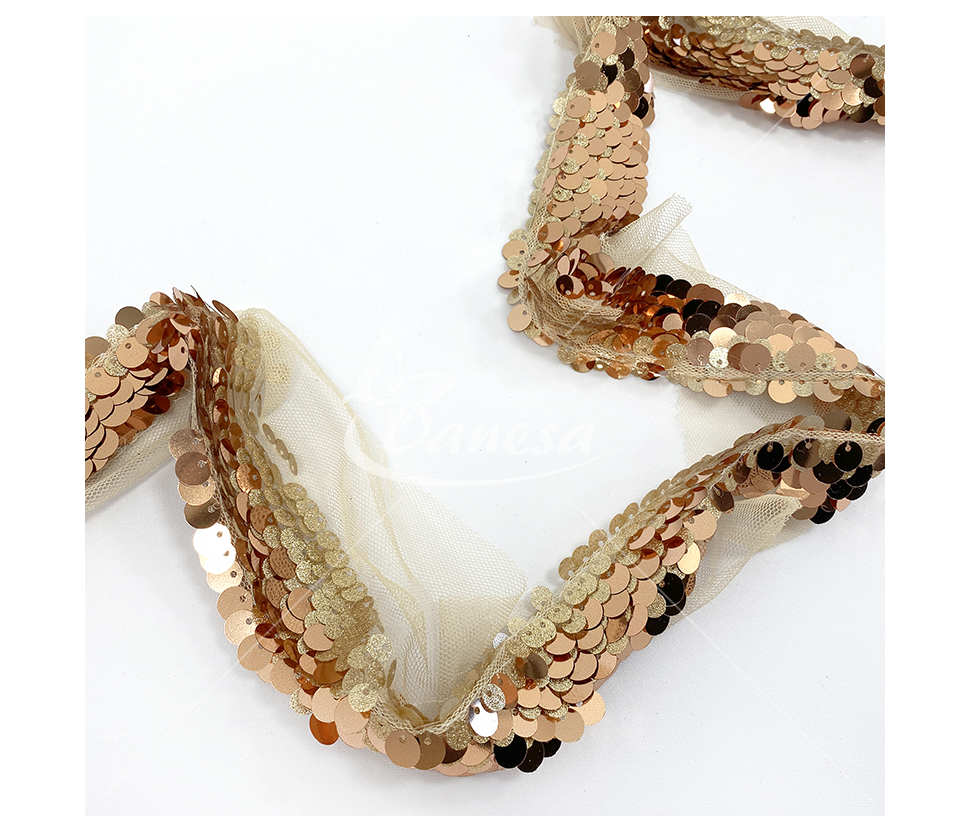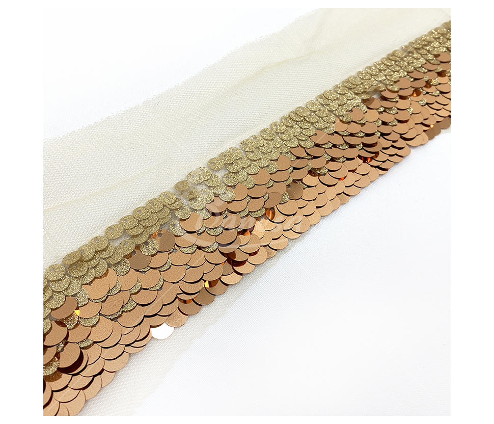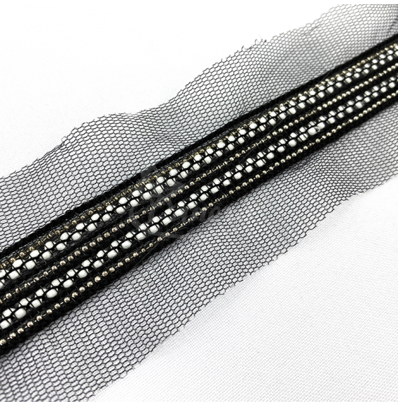 Smulkūs žvyneliai pritvirtinti ant lengvo tinkliuko, todėl juosta yra lanksti, patogi siūti ir pritaikyti net sudėtingesnėse dizaino vietose. Tobulas pasirinkimas tiems, kas ieško elegancijos, subtilumo ir kokybės.