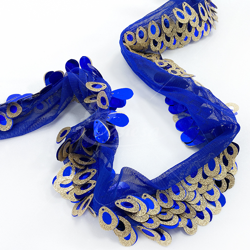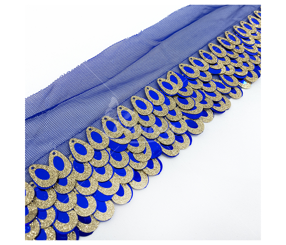 Elegantiška ir žvilganti dekoratyvinė juosta, puikiai tinkanti įvairiems kūrybiniams ir siuvimo projektams. Juosta puošta tankiai išdėstytais blizgiais žvyneliais, kurie suteikia prabangos ir šventiškumo įspūdį.