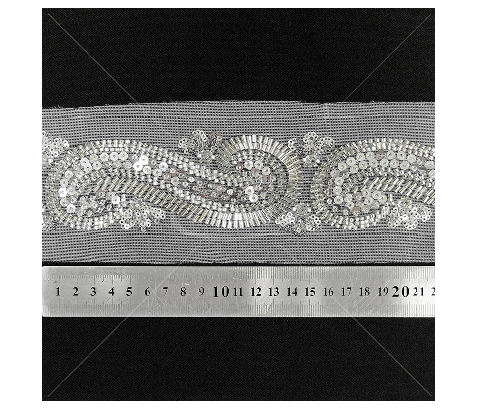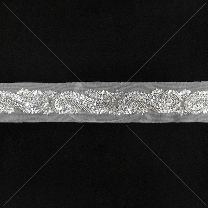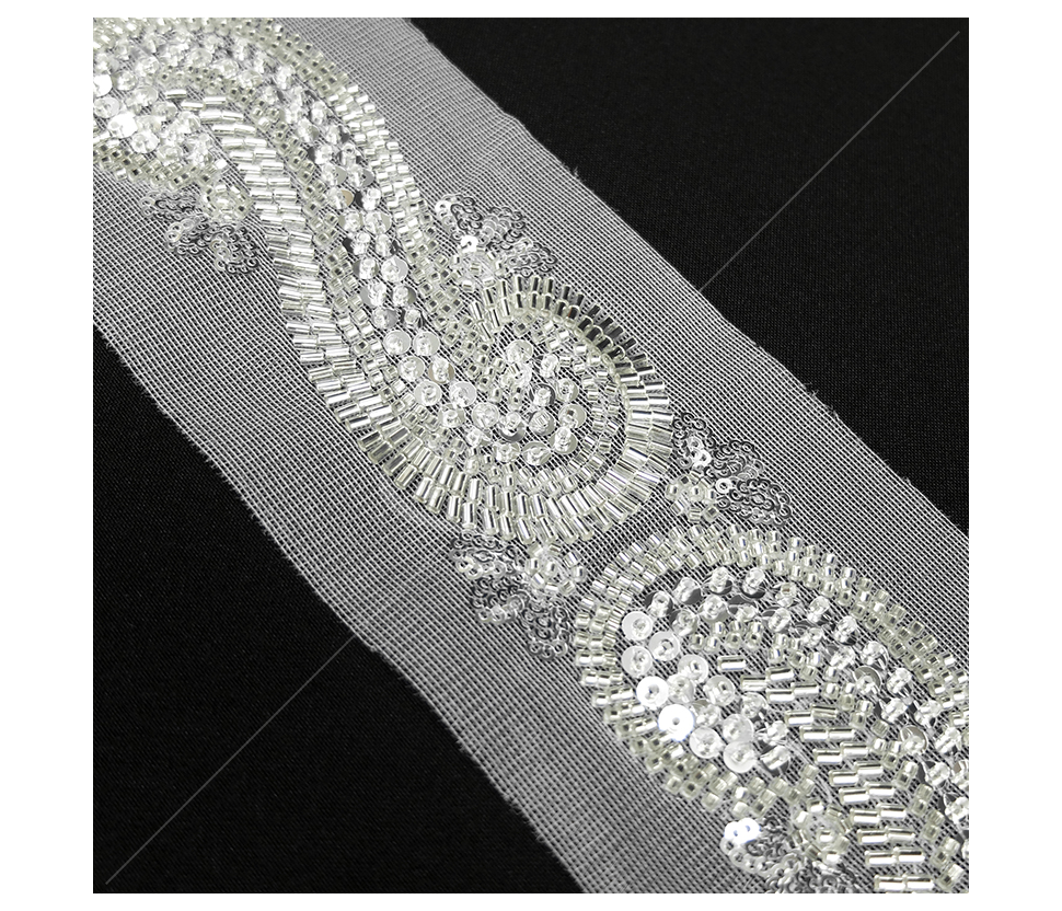 Dekoratyvinė juostelė su karoliukais ir žvyneliais.