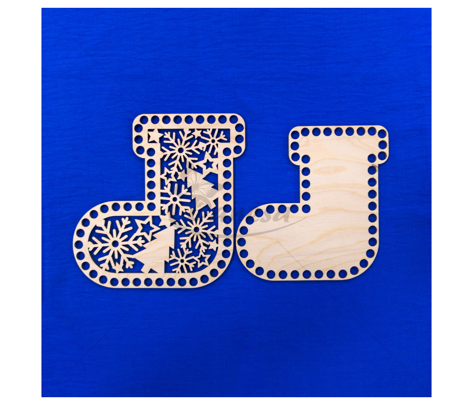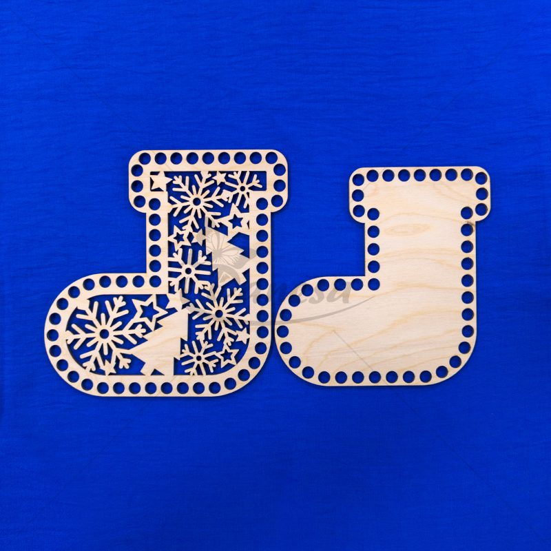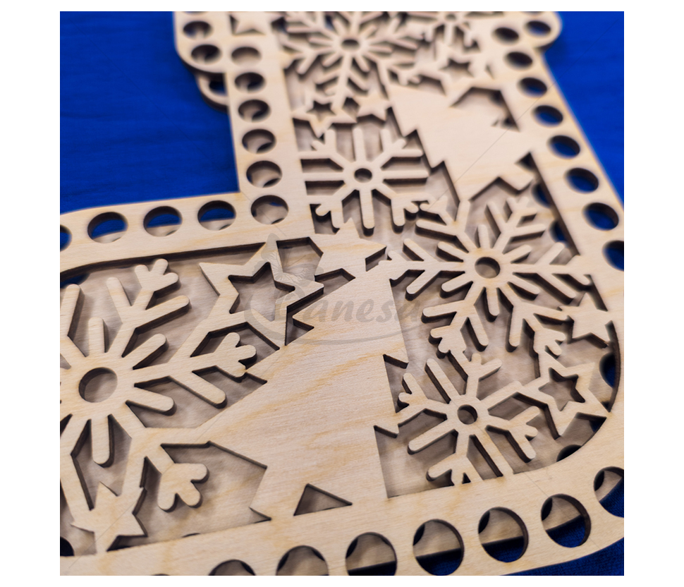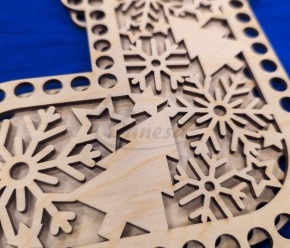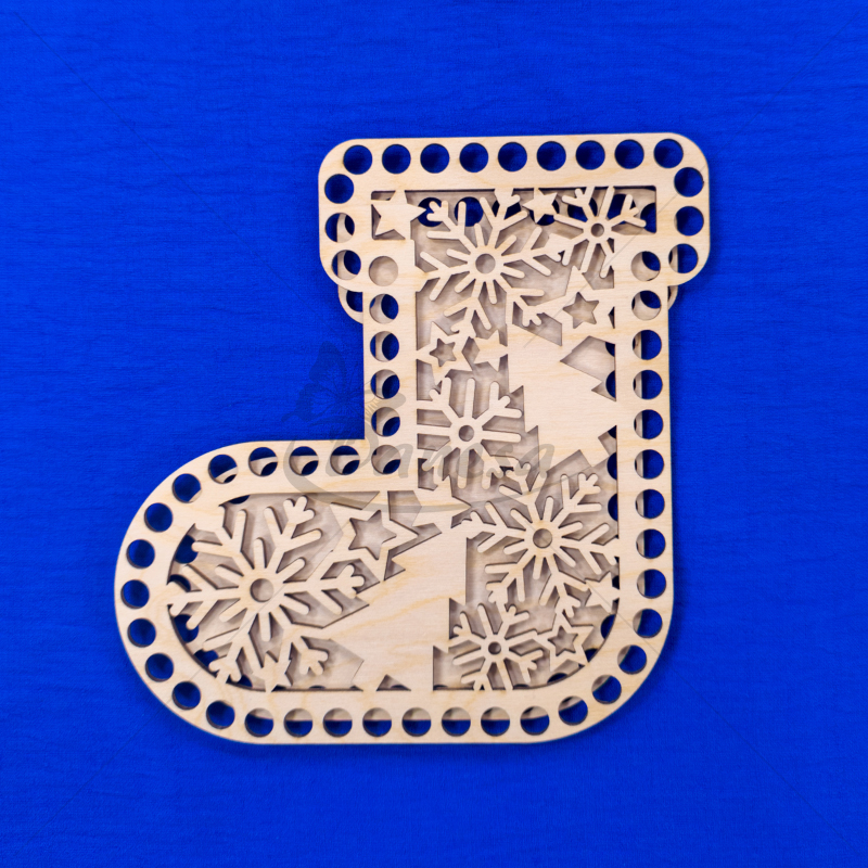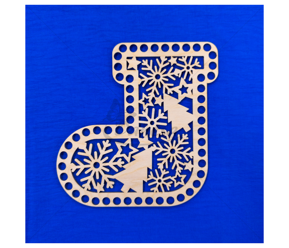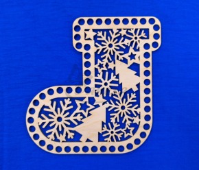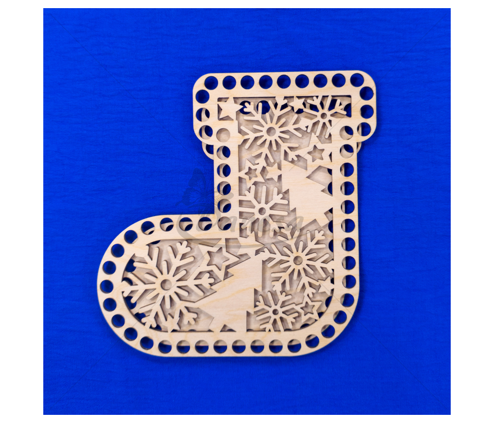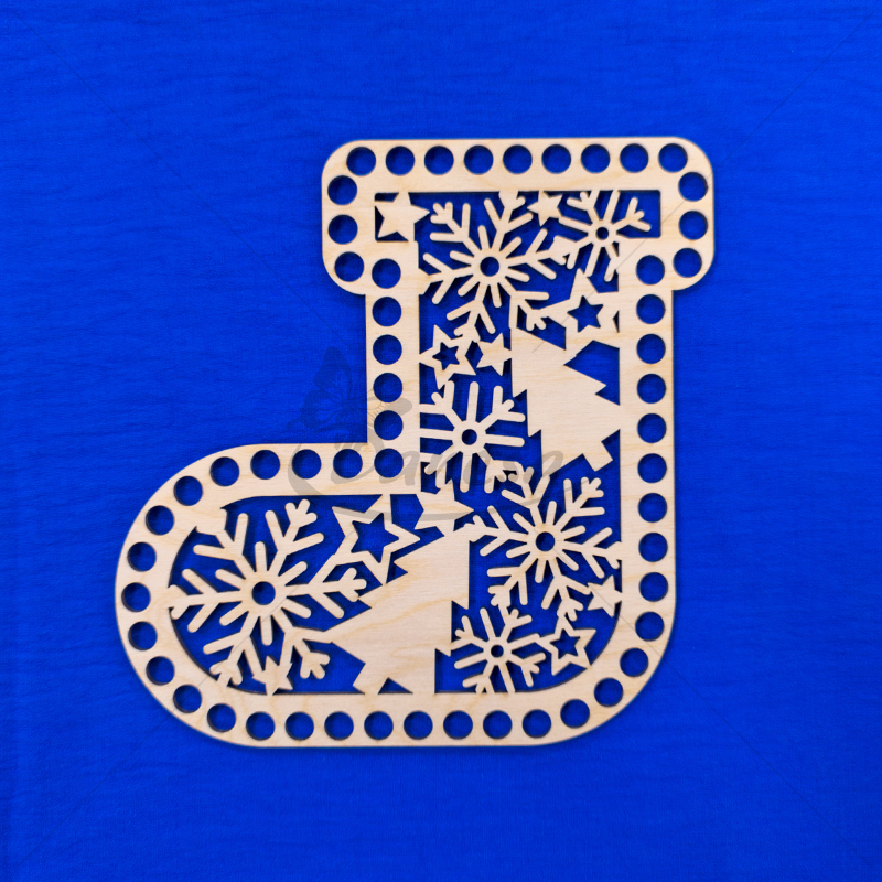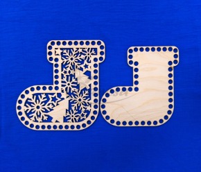 Medinis ruošinys – Kalėdų kojinės formos pagrindas, skirtas nertiems gaminiams kurti. Ruošinys pagamintas iš tvirto, lygaus medžio, turi tolygiai išgręžtas skylutes aplink kraštus, todėl prie jo patogu nerti įvairiais raštais.