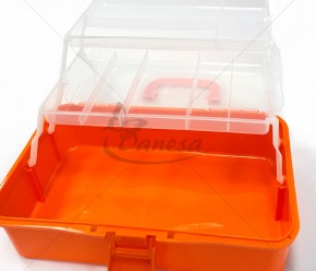 Dėžės viduje esantys trys sulankstomi skyriai patogiai taupo vietą.