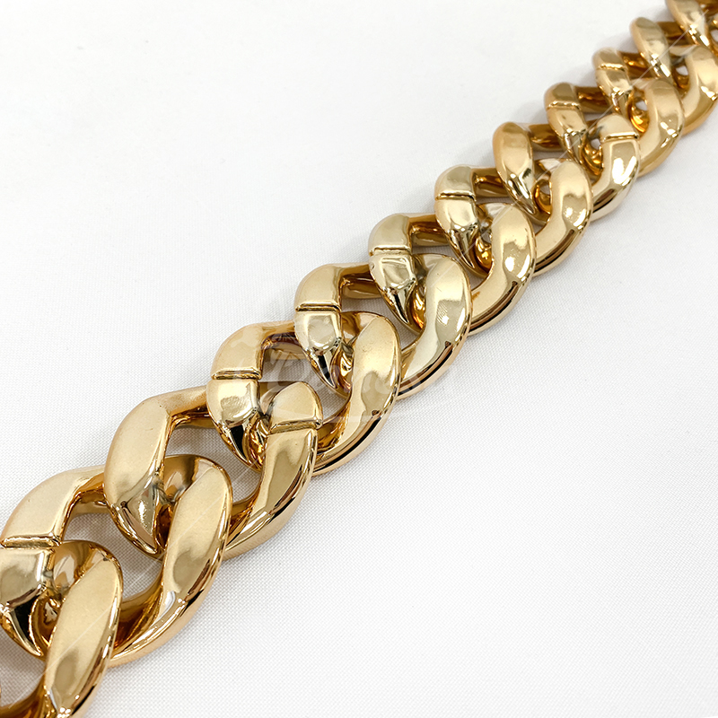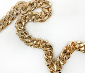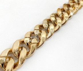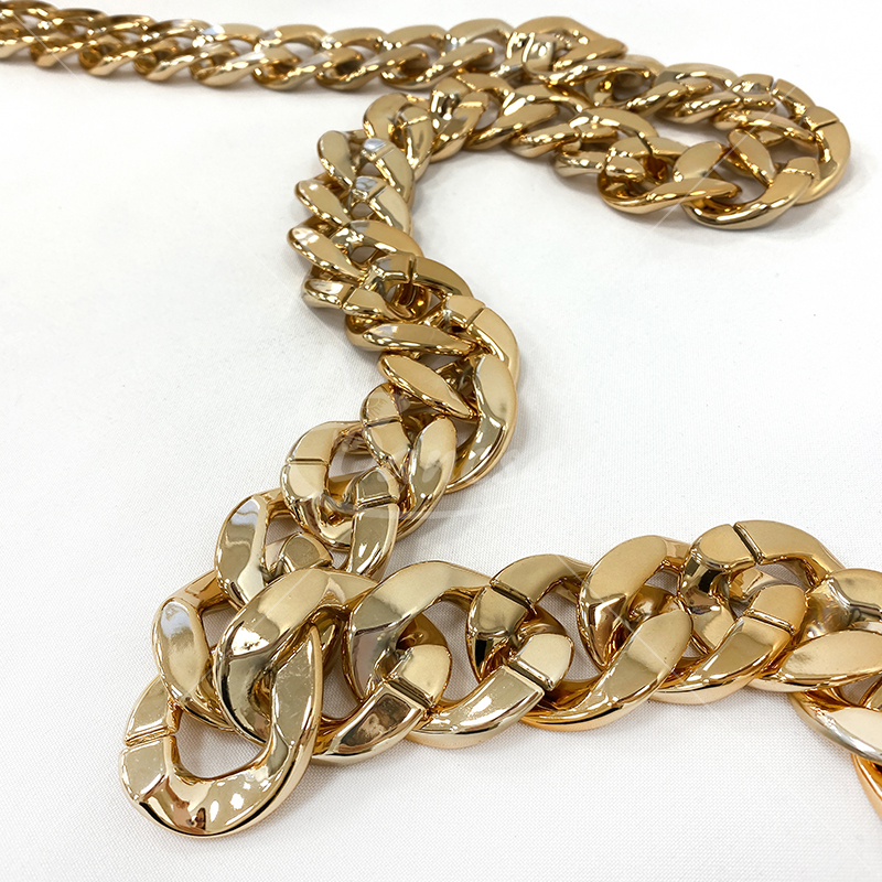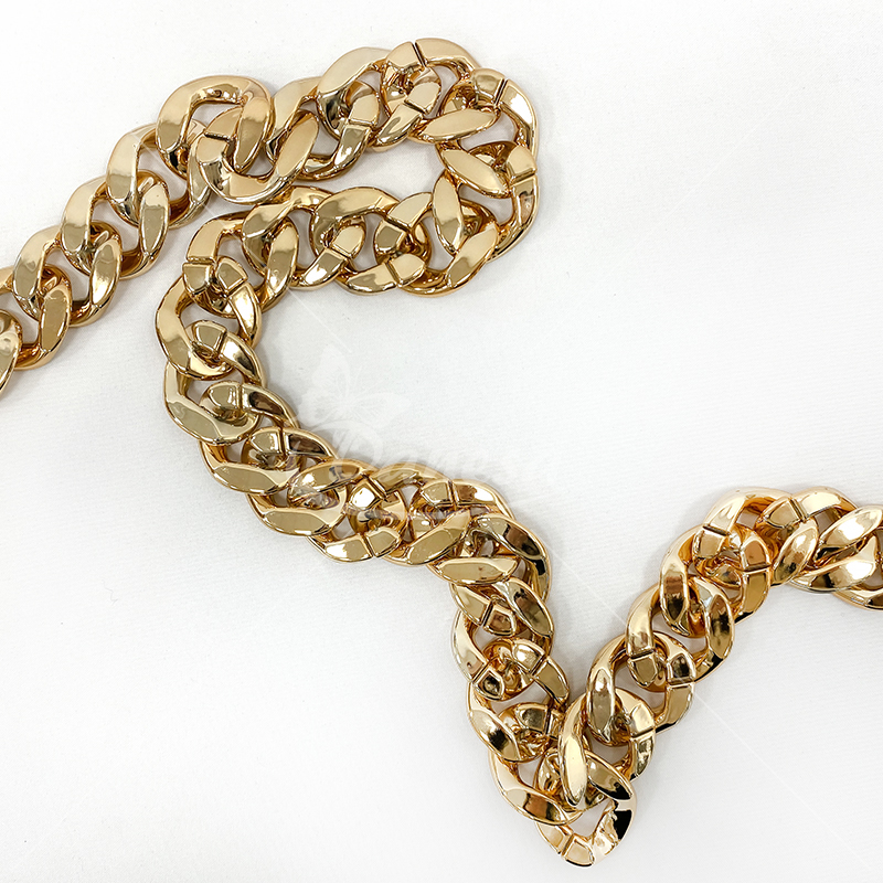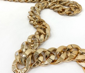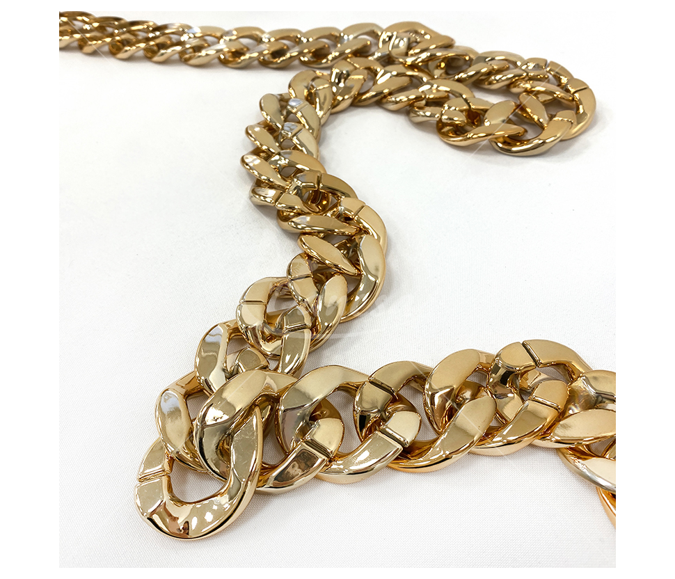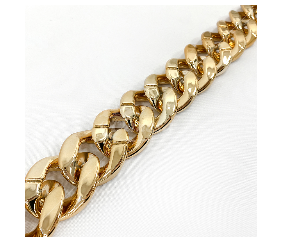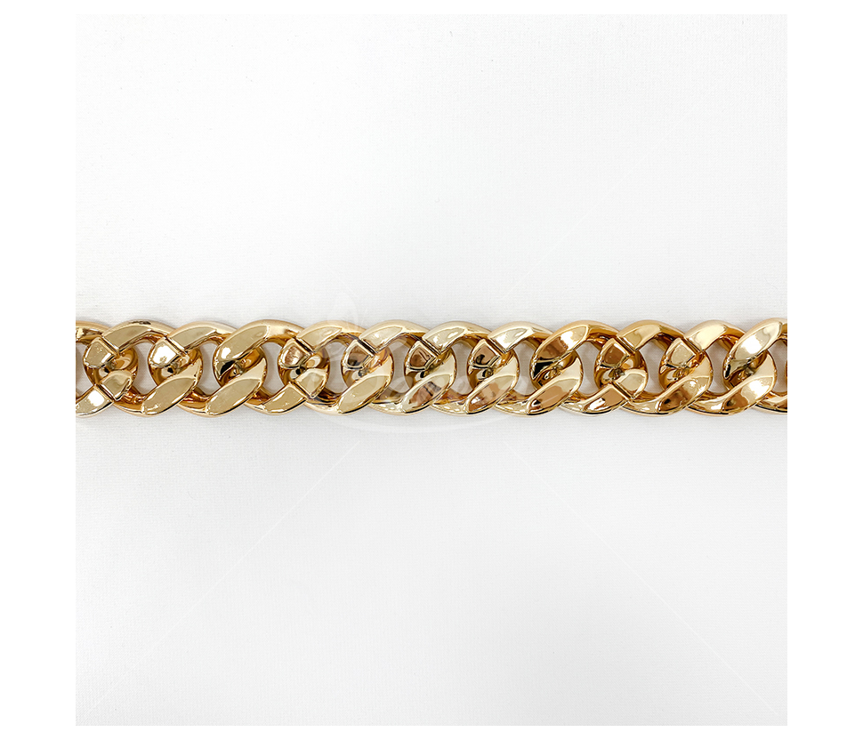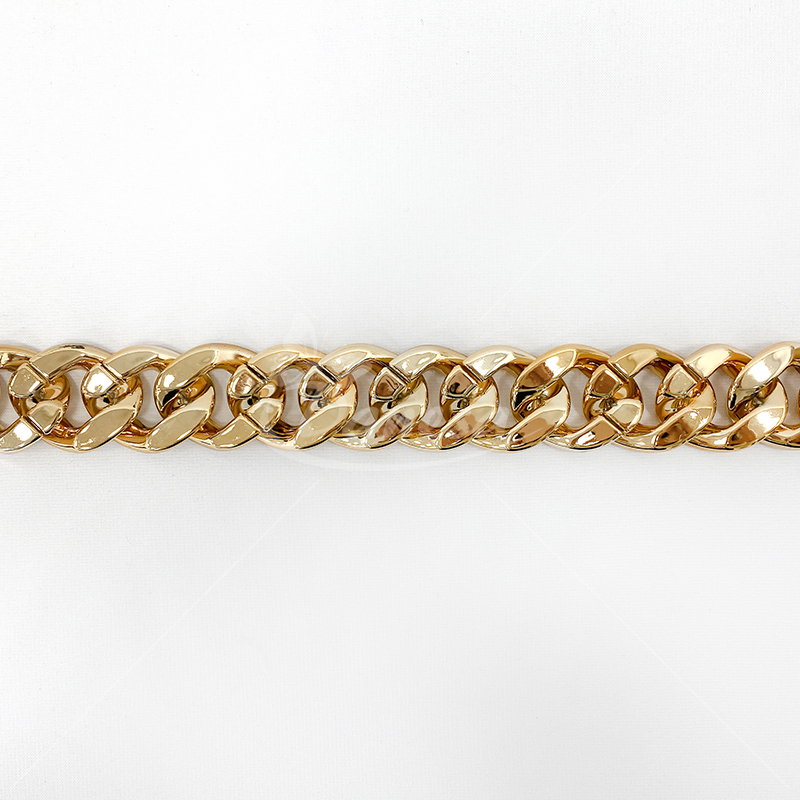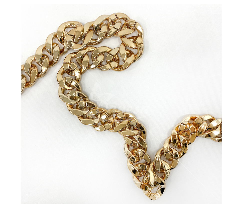 Auksinės spalvos grandinėlės juostelė – dekoratyvinė ir universali juostelė, kurios plotis apie 32mm. Puikiai tinka dekoravimui, rankdarbiams, papuošalų gamybai, drabužių, avalynės ar aksesuarų puošybai. Išorinis dizainas suteikia papildomo blizgesio ir išskirtinumo, o lanksti struktūra leidžia lengvai pritaikyti įvairiems kūrybiniams projektams.