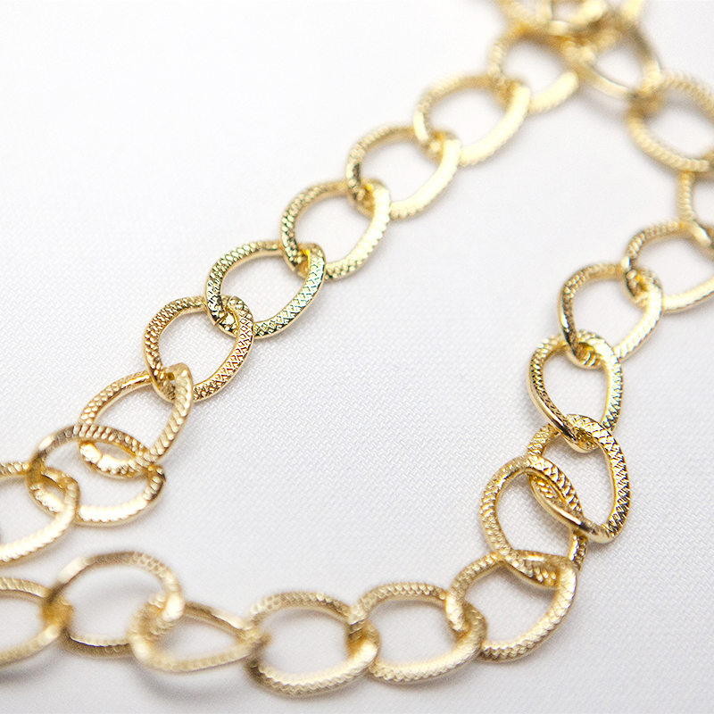 Auksinės spalvos grandinėlės juostelė – dekoratyvinė ir universali juostelė, kurios plotis apie 7mm. Puikiai tinka dekoravimui, rankdarbiams, papuošalų gamybai, drabužių, avalynės ar aksesuarų puošybai. Išorinis dizainas suteikia papildomo blizgesio ir išskirtinumo, o lanksti struktūra leidžia lengvai pritaikyti įvairiems kūrybiniams projektams.