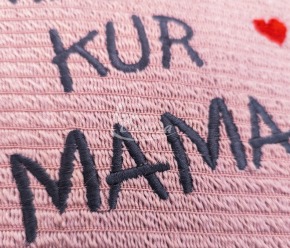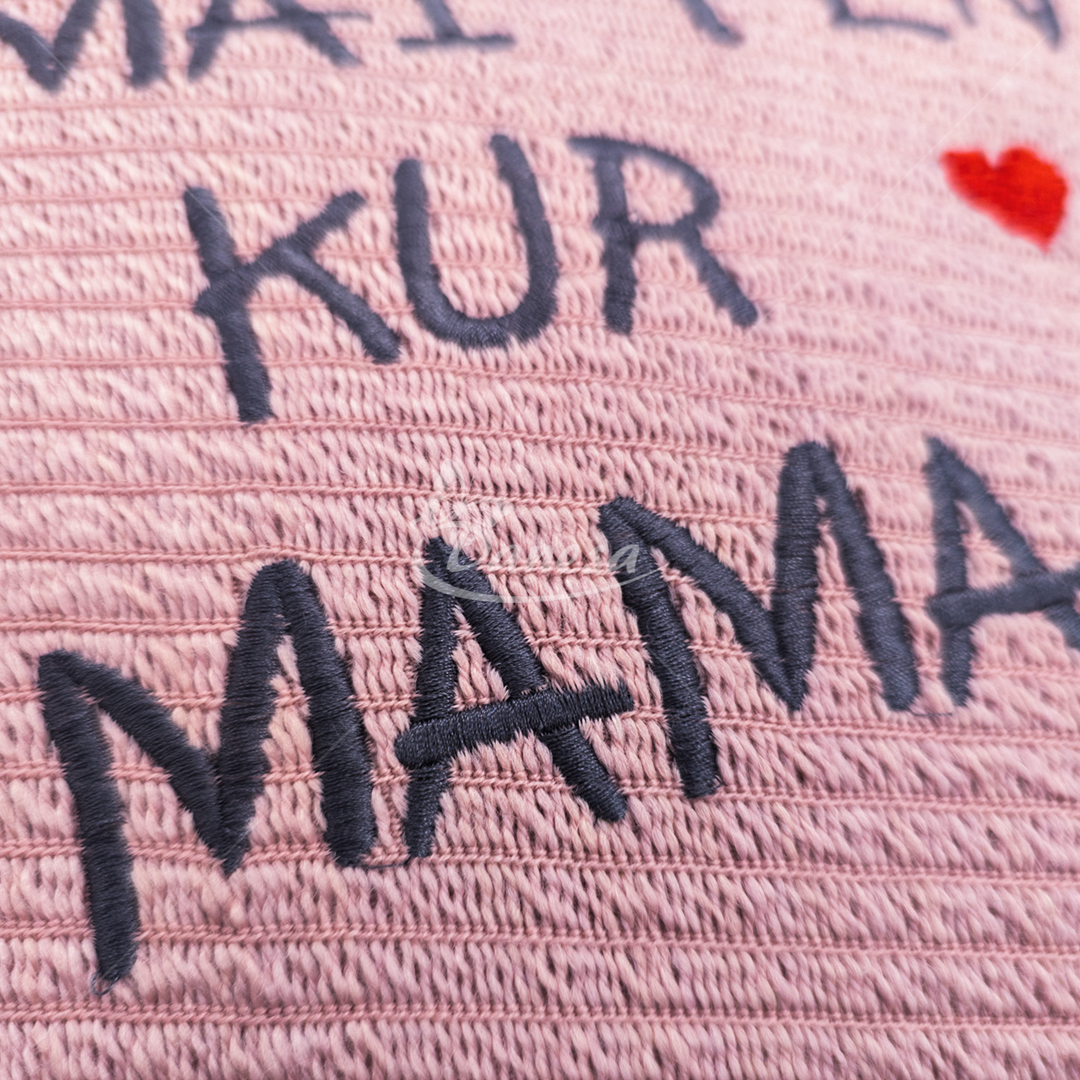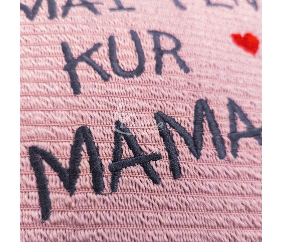 Dizainas: Mašininis siuvinėjimas su užrašu „Namai ten, kur Mama“