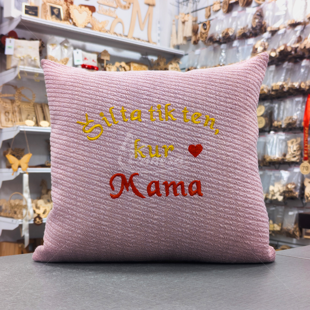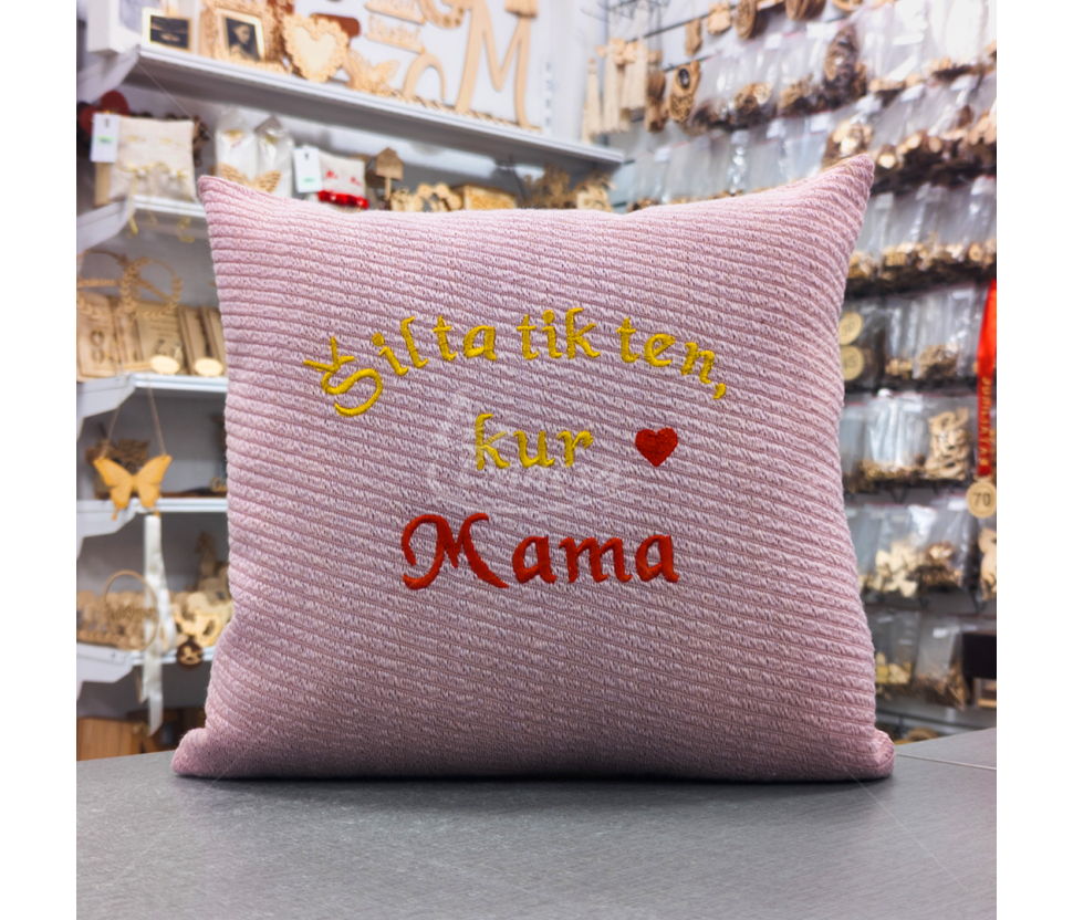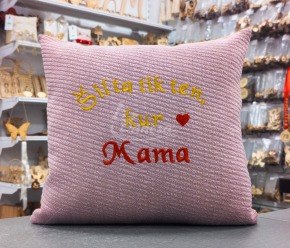 Išsiuvinėta Pagalvė "Šilta tik ten, kur Mama"