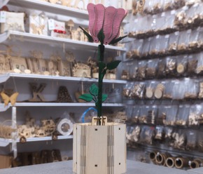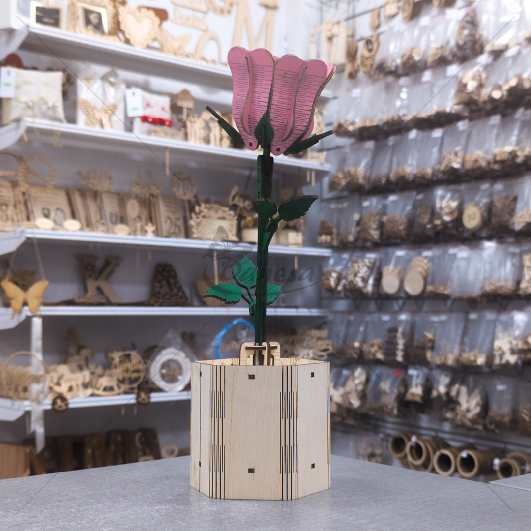 Ieškote originalios ir ilgalaikės dekoracijos savo namams ar dovanai? Ši rankų darbo medinė gėlė su vazonu – puikus pasirinkimas! Nudažyta ryškia, žaisminga rožine spalva, ji akimirksniu pagyvins bet kurį interjerą.